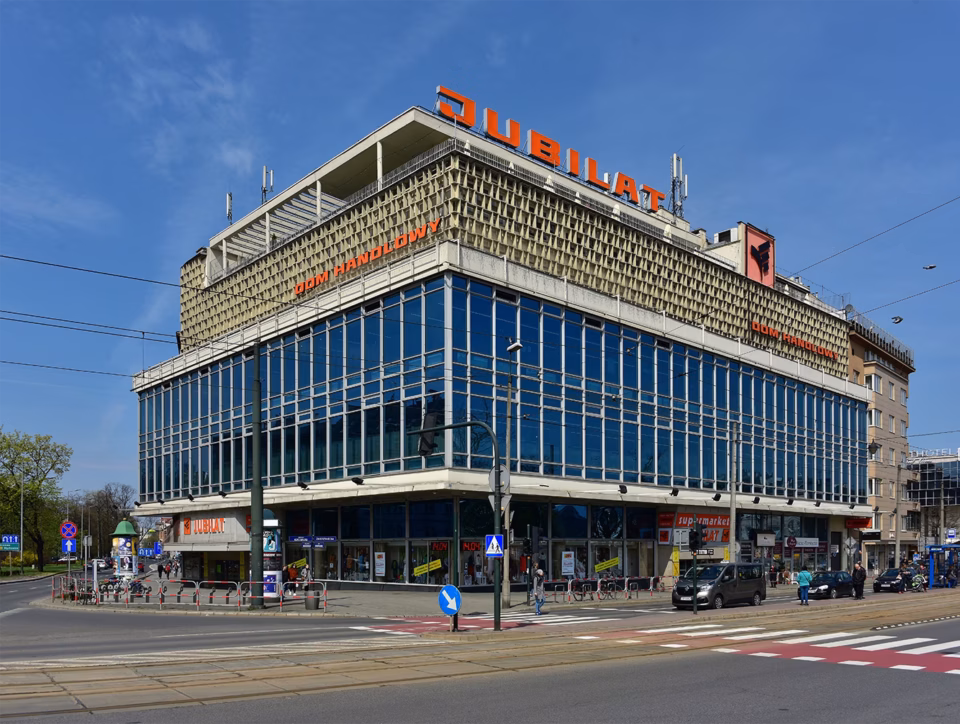 WYGODNIE BO W CENTRUM KRAKOWA Naszą reprezentacyjną placówką a zarazem siedzibą firmy jest funkcjonujący od 1969 roku Dom Handlowy "JUBILAT" położony w centrum Krakowa nad zakolem Wisły nieopodal Wawelu. Na powierzchni ok. 6.800 m2 oferowany jest Klientom pełny asortyment towarów branży spożywczej i przemysłowej, znanych i renomowanych producentów. Stoisko spożywcze oferuje bogaty asortyment artykułów spożywczych. Stoiska przemysłowe oferują atrakcyjne towary dobrej jakości w różnorodnym ciekawym asortymencie. W Domu Handlowym "JUBILAT" zlokalizowane są również wzbogacające naszą ofertę stoiska handlowe i usługowe firm prywatnych. Działalność handlową prowadzimy również w sieci 9 sklepów spożywczo- przemysłowych.