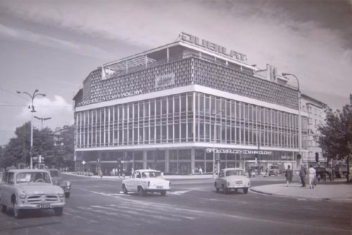 Choć wstępny projekt przygotował Henryk Jerzy Marconi, proces inwestycyjny uległ opóźnieniu. Zmieniono zespół projektowy, a ostateczna wersja budynku powstała pod kierunkiem Jadwigi Sanickiej, która zachowała główne założenia pierwotnej koncepcji. Problemy techniczne, w tym stabilizacja podmokłego gruntu przy brzegu Wisły, sprawiły, że realizacja trwała blisko dekadę. 20 lipca 1969 roku „Jubilat” został oficjalnie otwarty, stając się największym i najbardziej nowoczesnym domem towarowym w Krakowie.